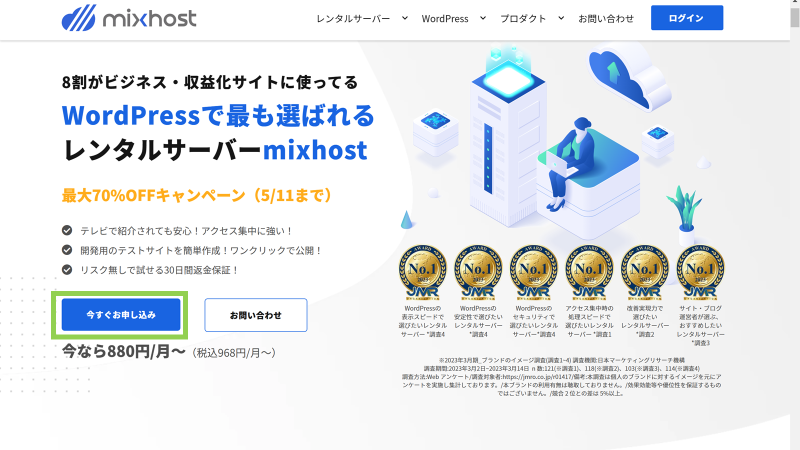 まずは、下の画像か「mixhost」をタップして公式サイトにアクセスしましょう!