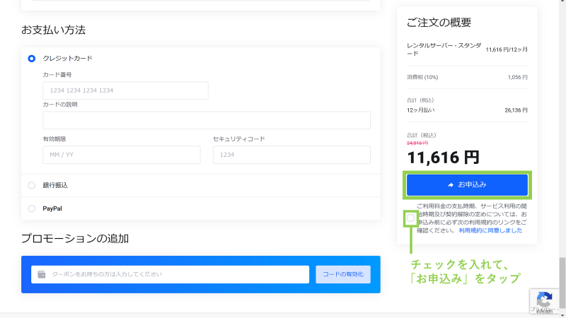 「今すぐお申し込み」をタップすると、サーバー契約のプランが出てきます。